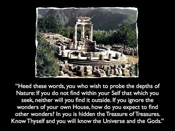 Inscribed in stone at the temple of the Oracle at Delphi. Early and ongoing inspiration for my journey of self discovery.